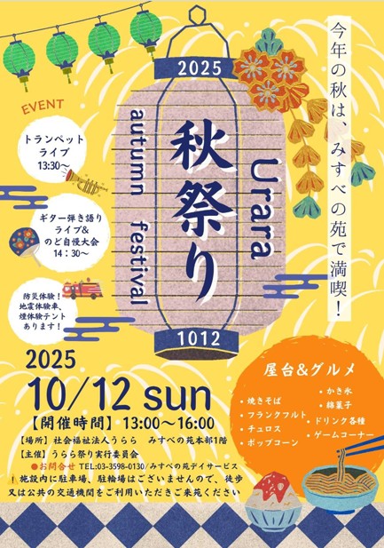 去る10月12日(日曜日)、うらら秋祭りが開催されました。