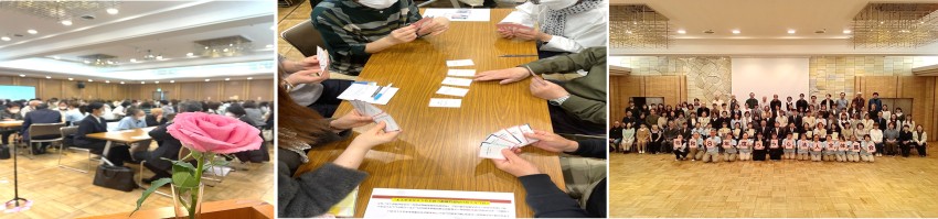 その後、勤続表彰式・入職者紹介、BCPに関連する災害アプリ「災害時安否確認システム」の体験、もしバナゲーム、最後に全体での記念撮影を行いました。